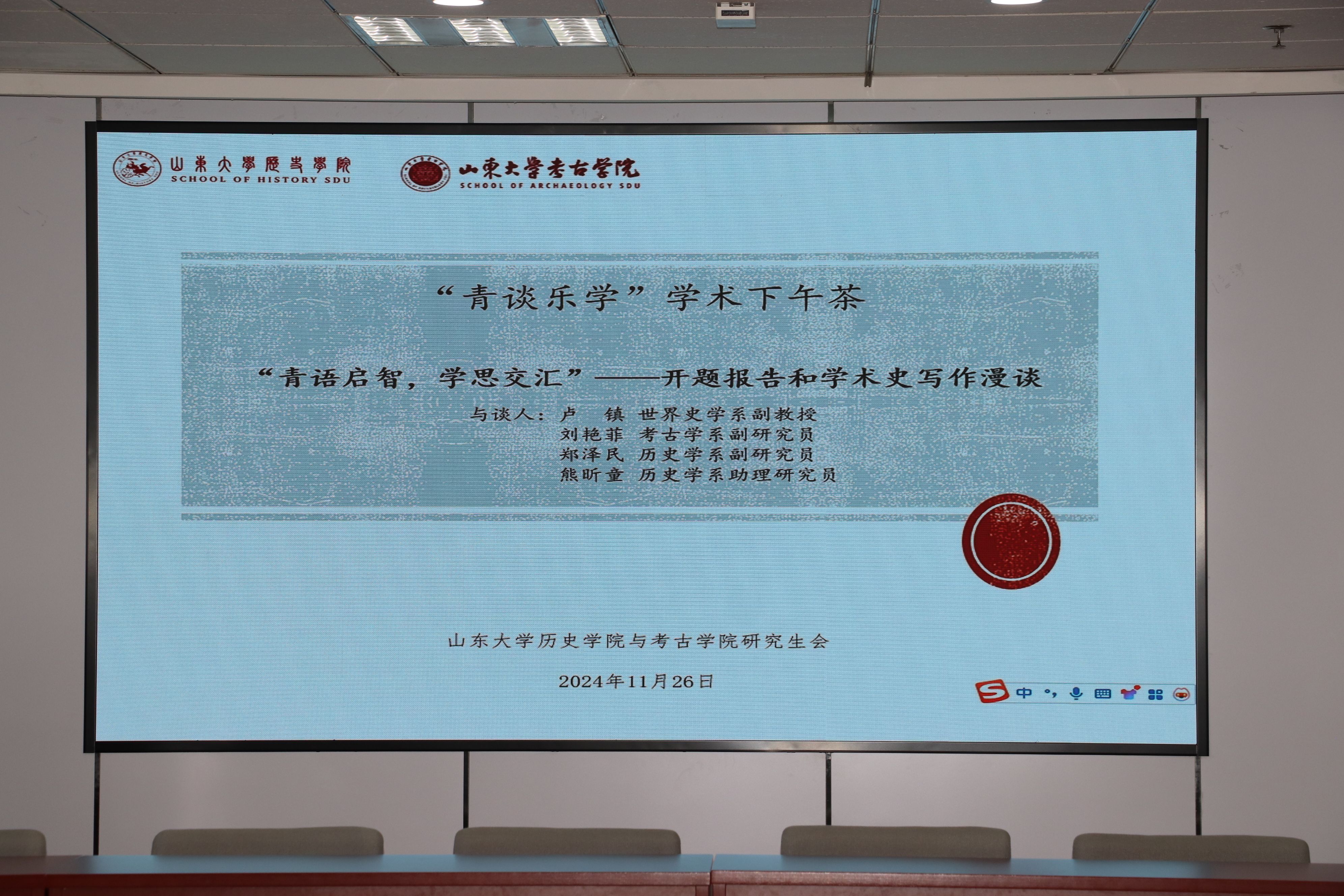 11月26日下午,以“开题报告和学术史写作漫谈”为主题的学术下午茶活动在中心校区知新楼A1017顺利举行。本次活动由1066vip威尼斯下载与考古学院研究生会和1066vip威尼斯下载、考古学院青年教师发展联合会联合举办,邀请世界史学系副教授卢镇、考古学系副研究员刘艳菲、历史学系副研究员郑泽民、历史学系助理研究员熊昕童进行科研经验分享,50余名本科生、硕博研究生参加活动。